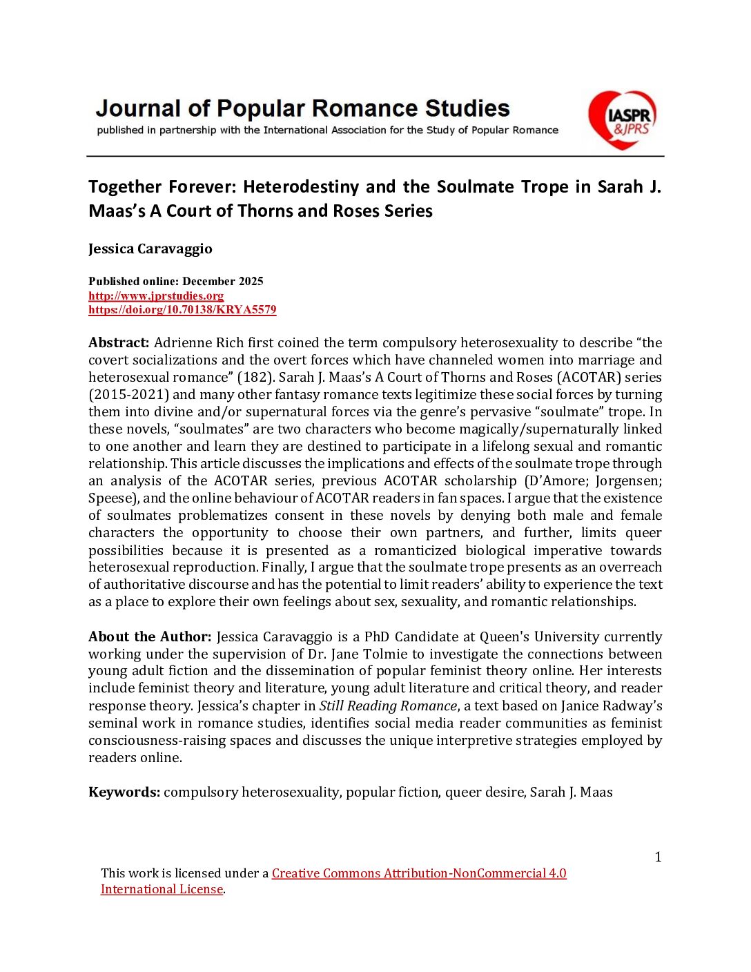 Journal of Popular Romance Studies